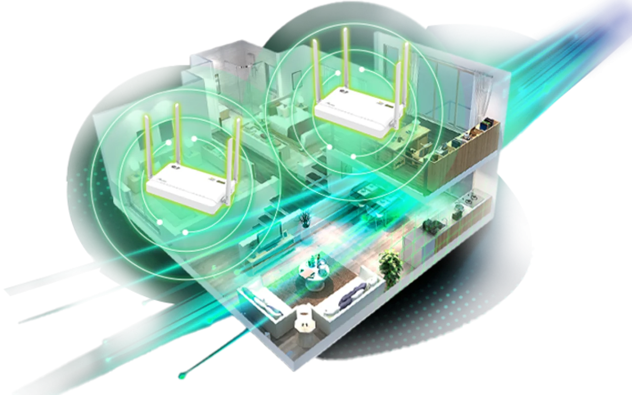 ด้วยการส่งสัญญาณของ WiFi Router พื้นฐาน 1 ตัว ข้อมูลจะถูกส่งแบบไร้สายผ่านคลื่นวิทยุ ซึ่งคุณไม่จำเป็นต้อง เชื่อมต่อสาย LAN กับเราเตอร์ของคุณอีกต่อไป อย่างไรก็ตาม การเชื่อมต่อแบบไร้สายก็มีแนวโน้มที่จะถูกรบกวนด้วยปัจจัยต่าง ๆ