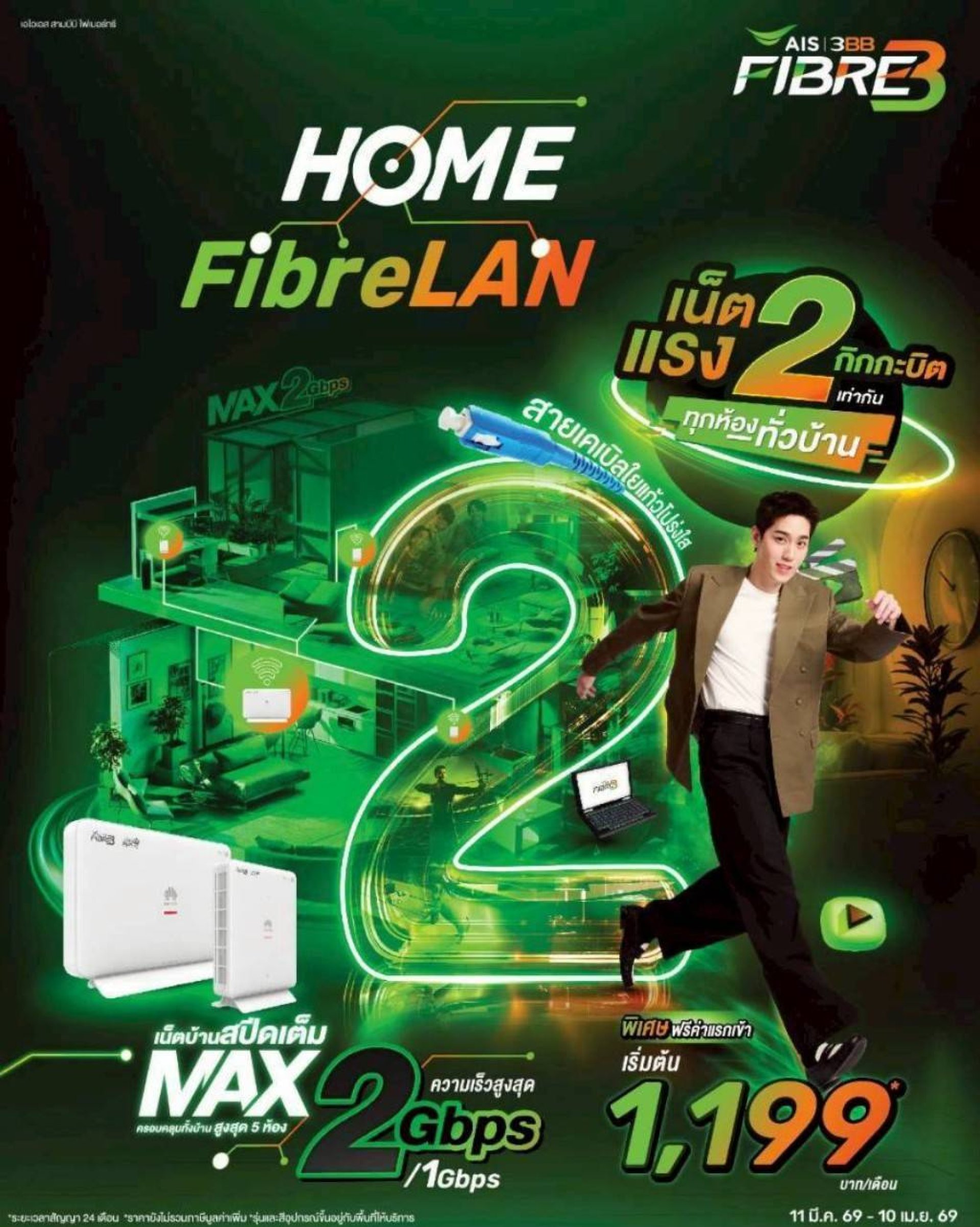 แพ็กเกจ Home FibreLAN Max 2Gbps แรงทั่วทั้งบ้าน